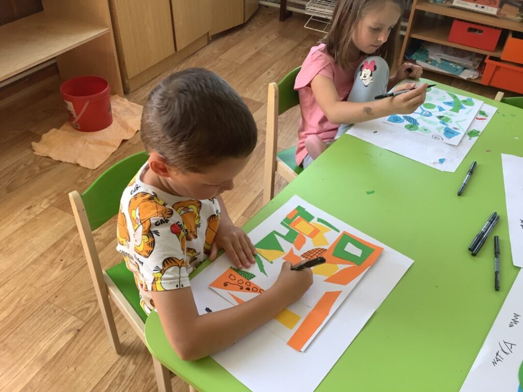 | Dílčí cíl: Upevnit správné držení nůžek, rozvoj fantazie a cit pro barvy. |
