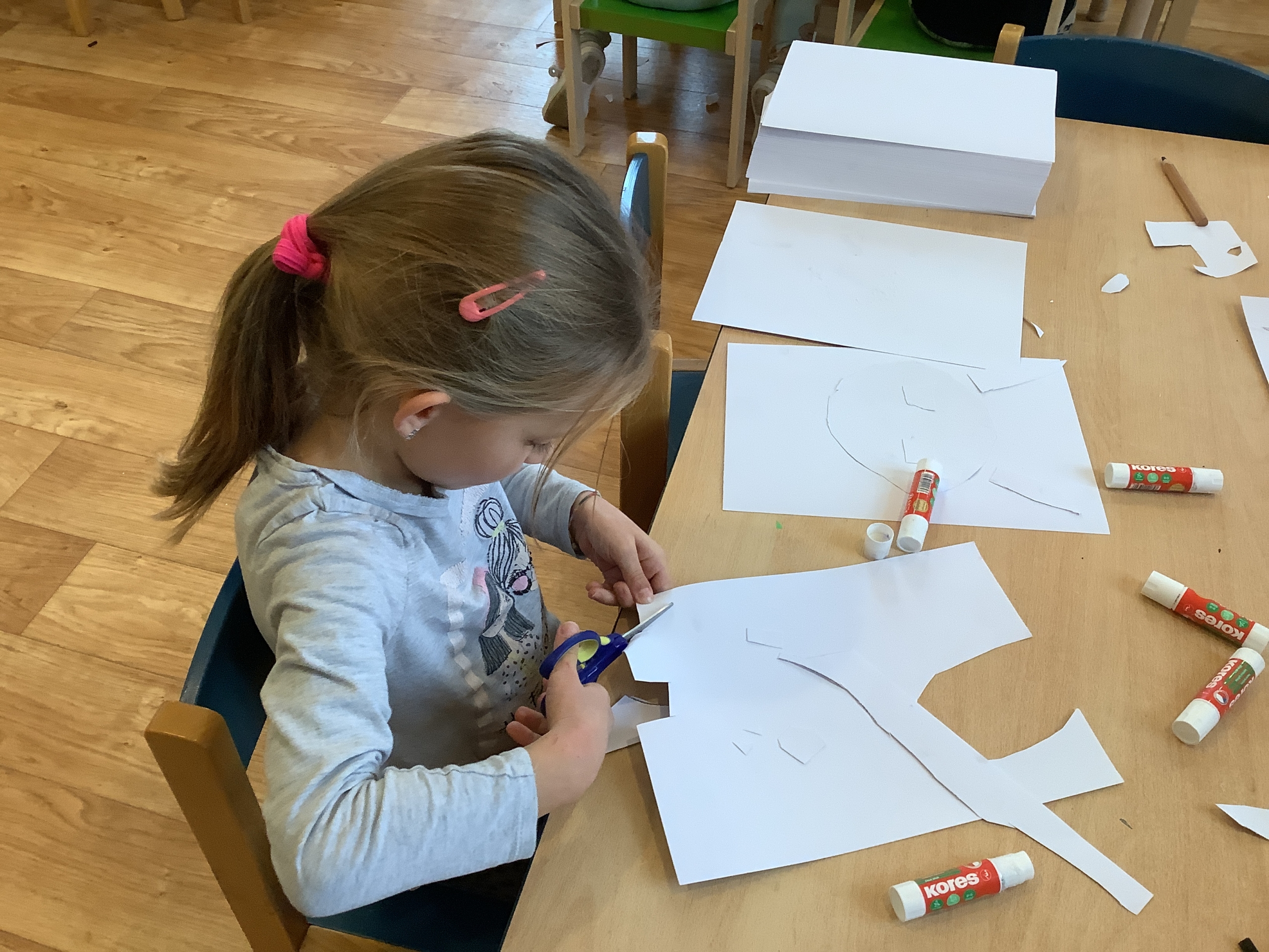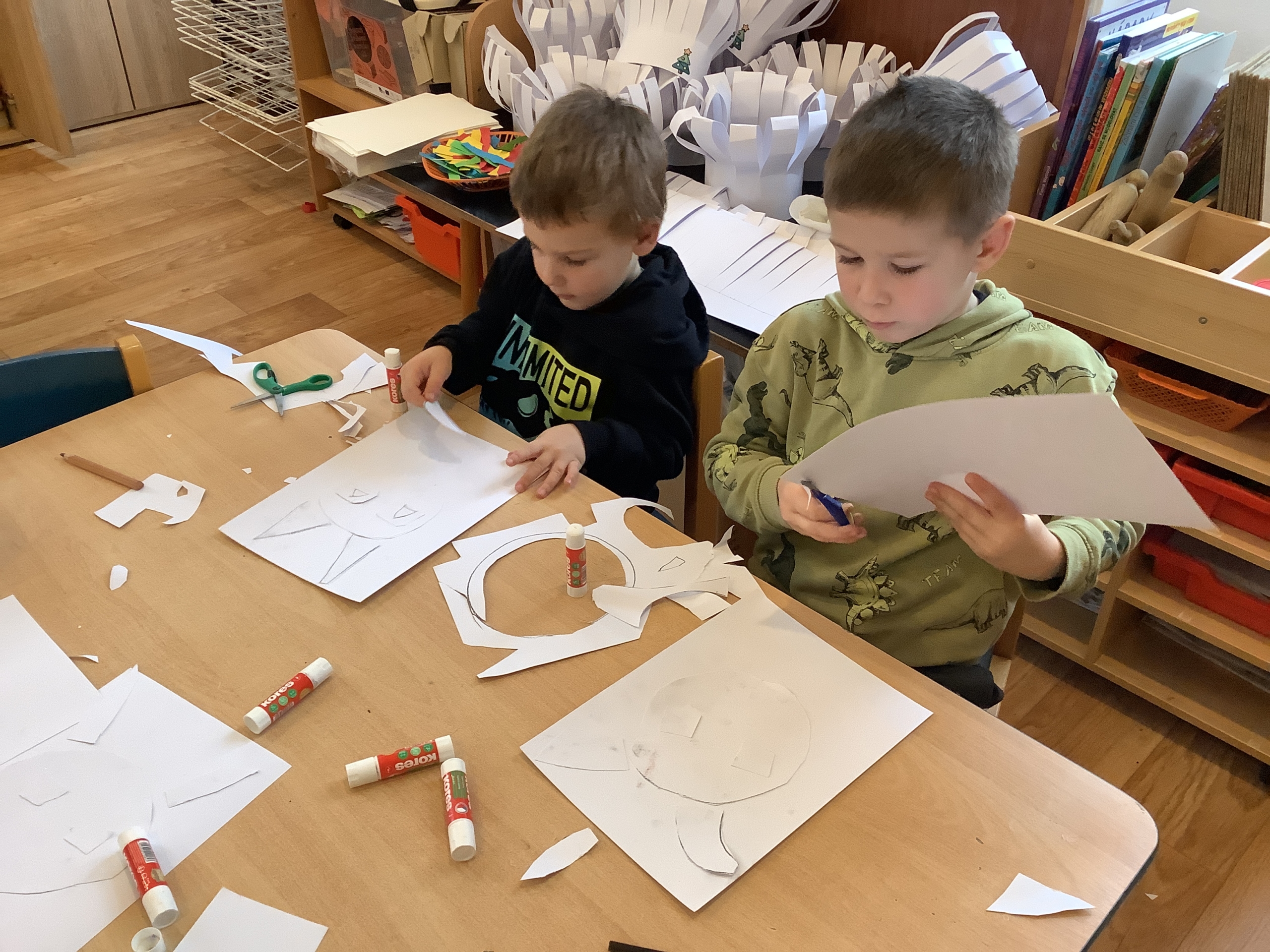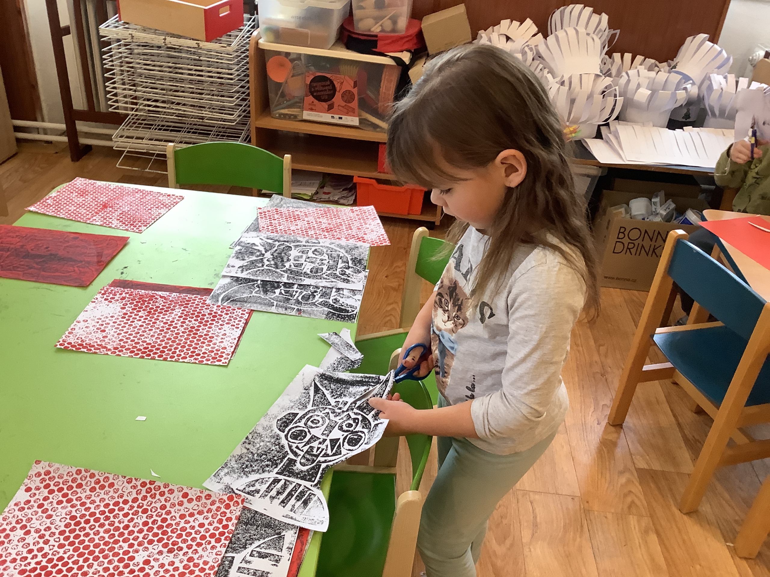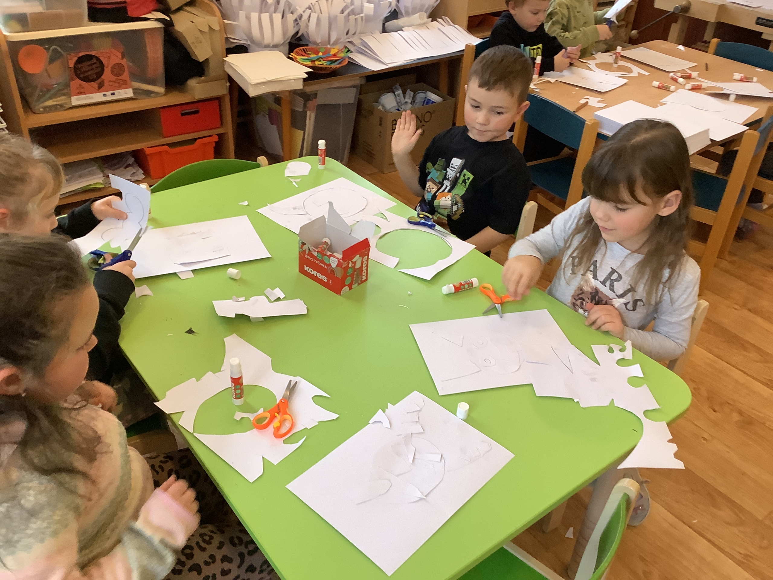 | Dílčí cíl:Seznámit se s novými technikami. Upevnit si správné držení nůžek, rozvoj fantazie. |