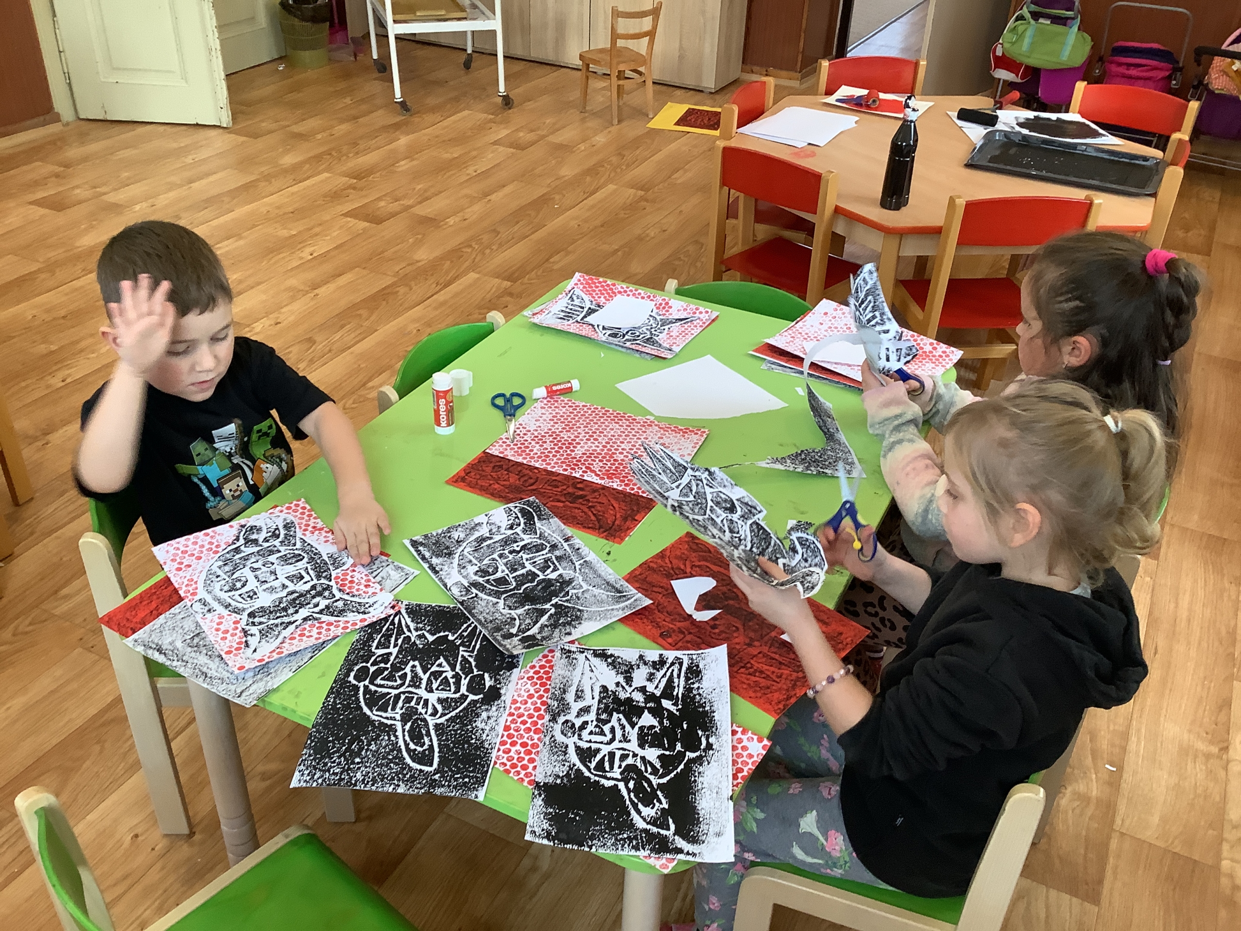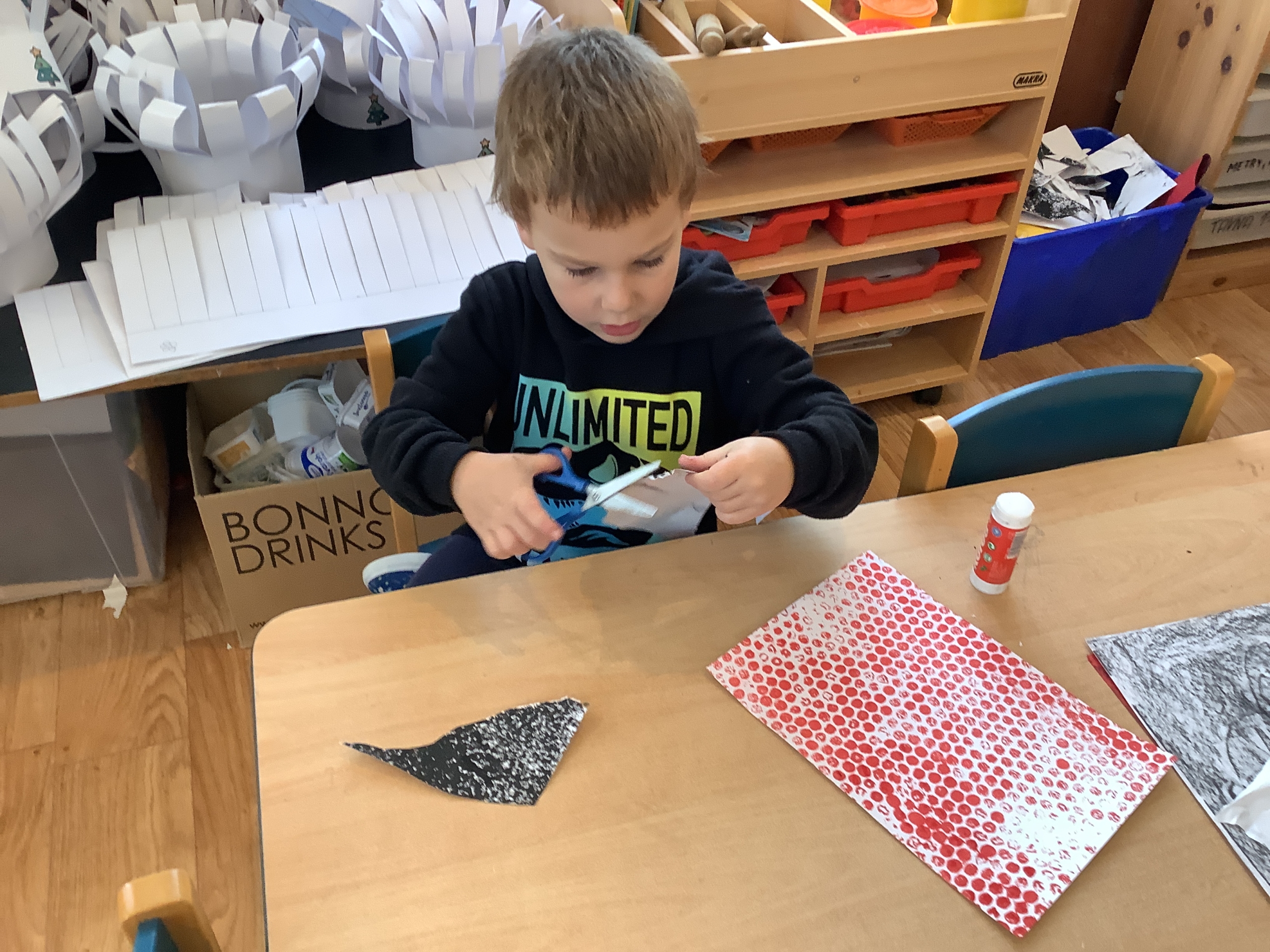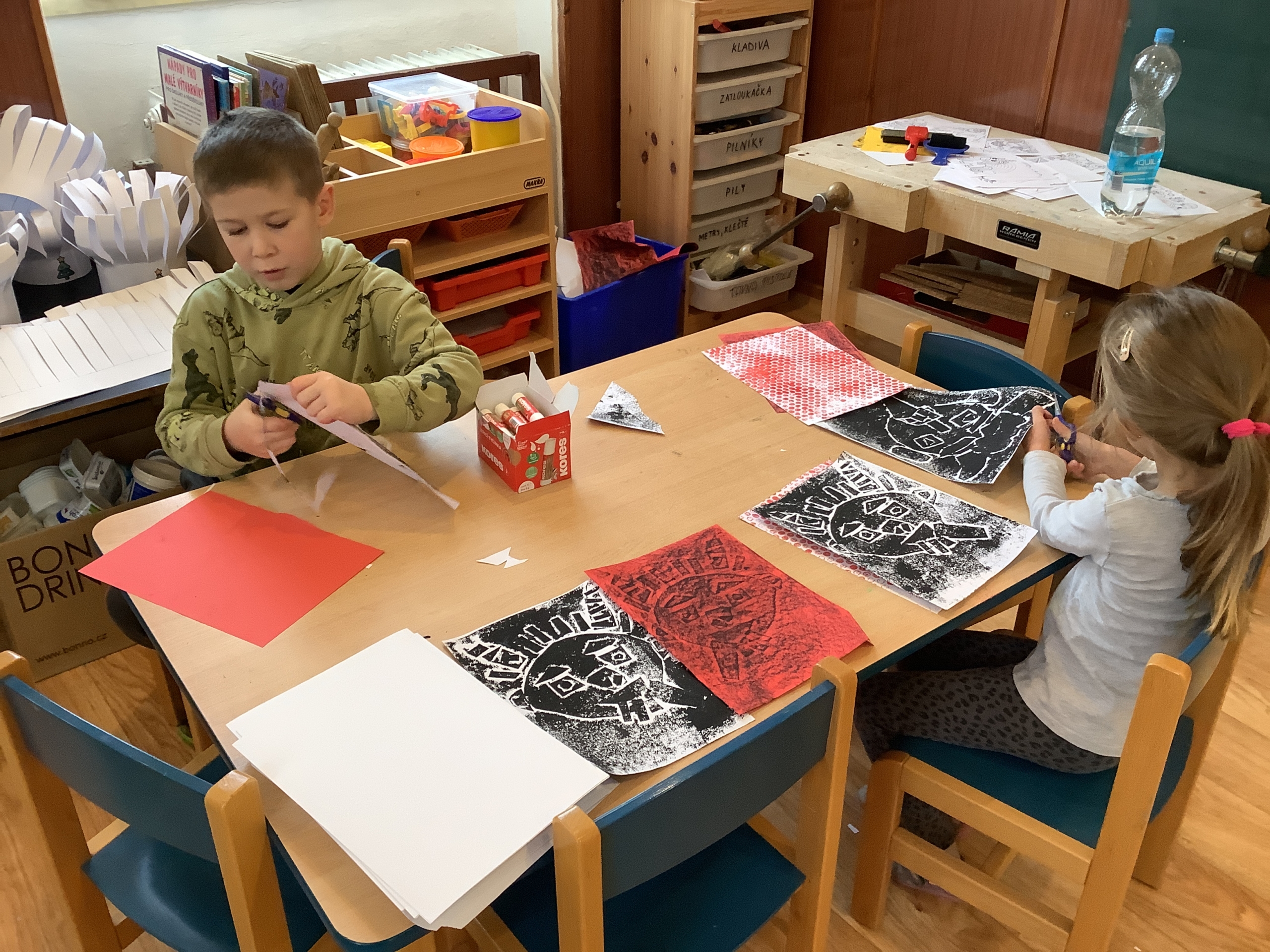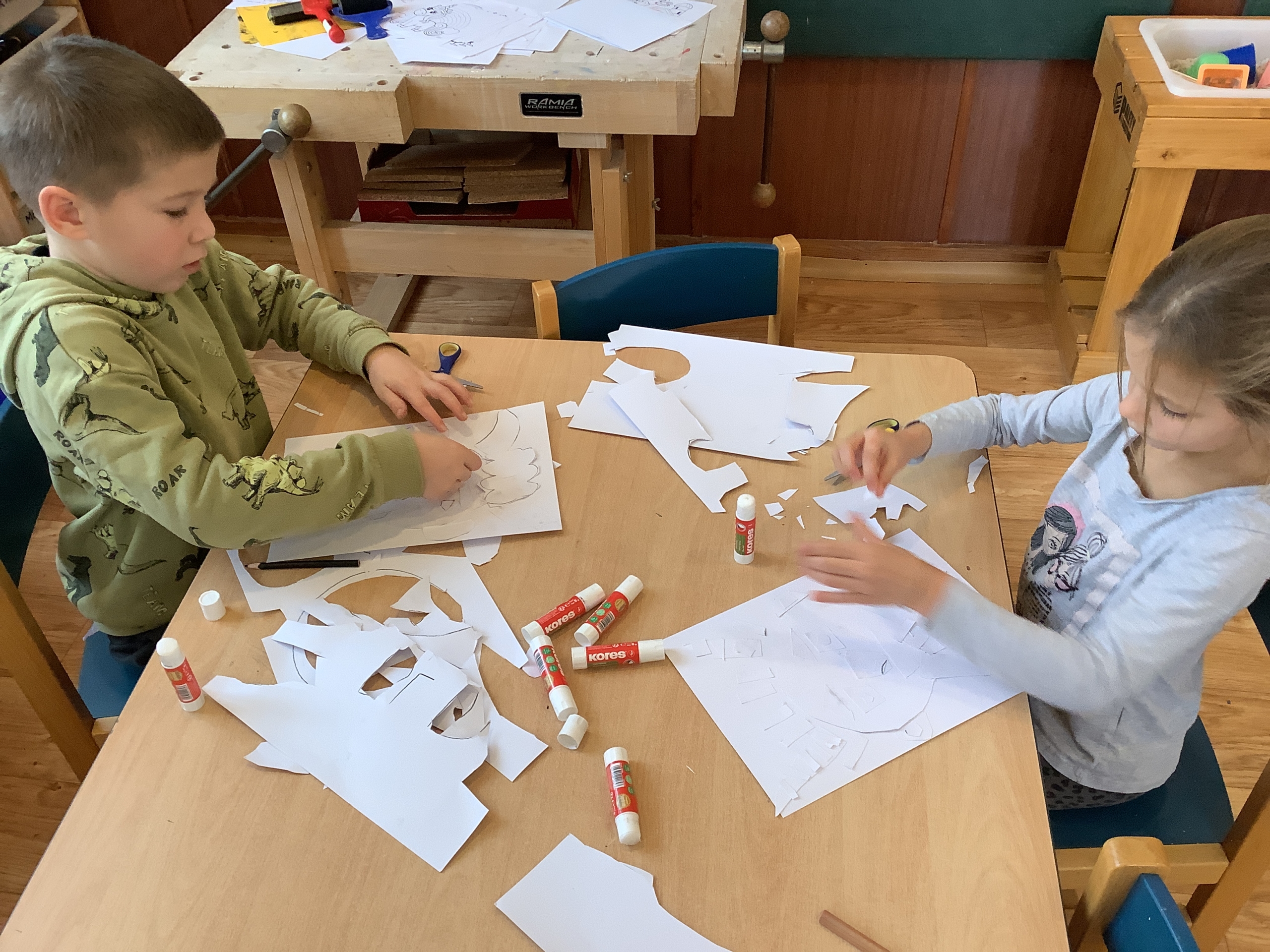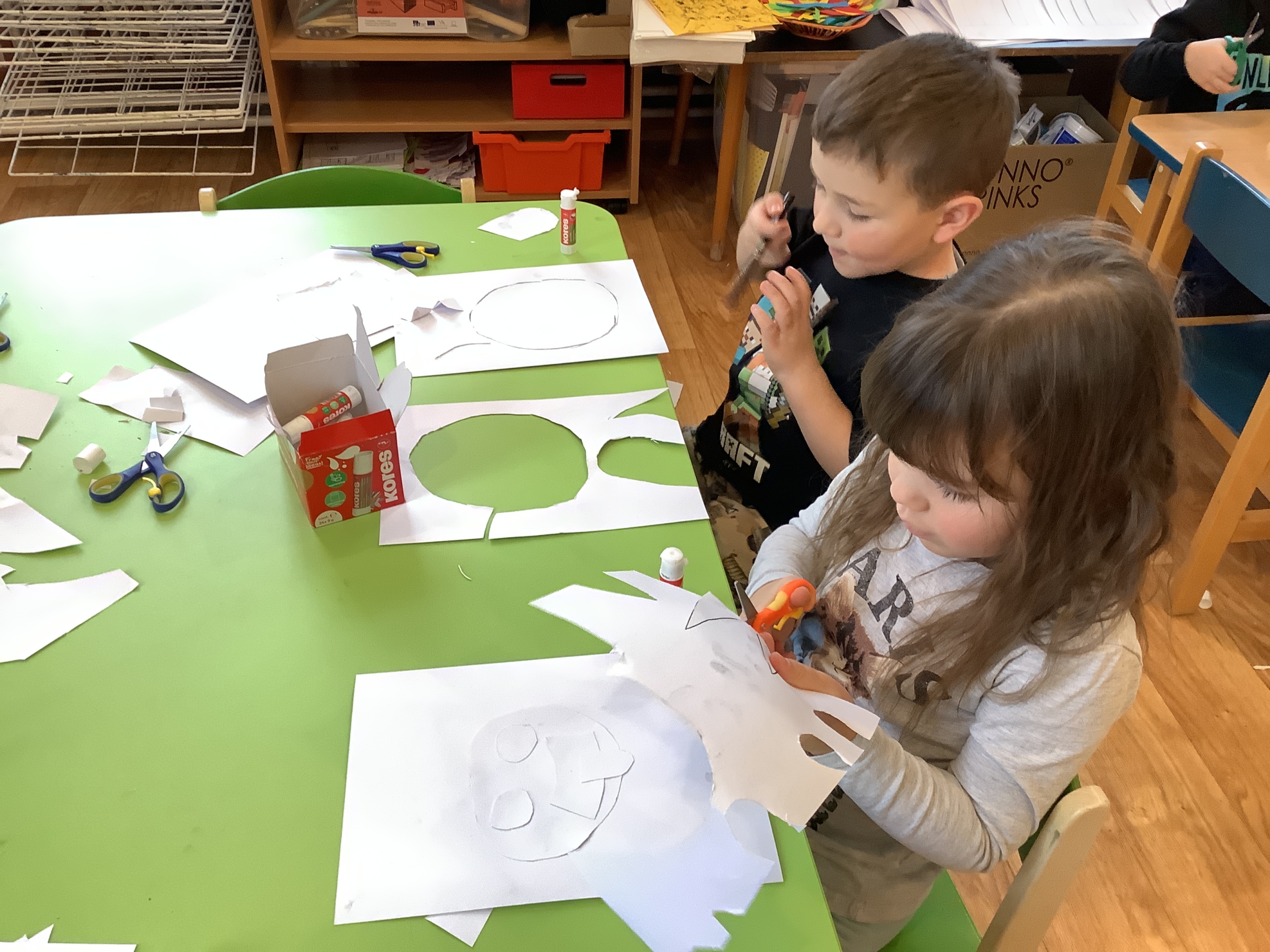 | Dílčí cíl:Seznámit se s novými technikami. Upevnit si správné držení nůžek, rozvoj fantazie. |