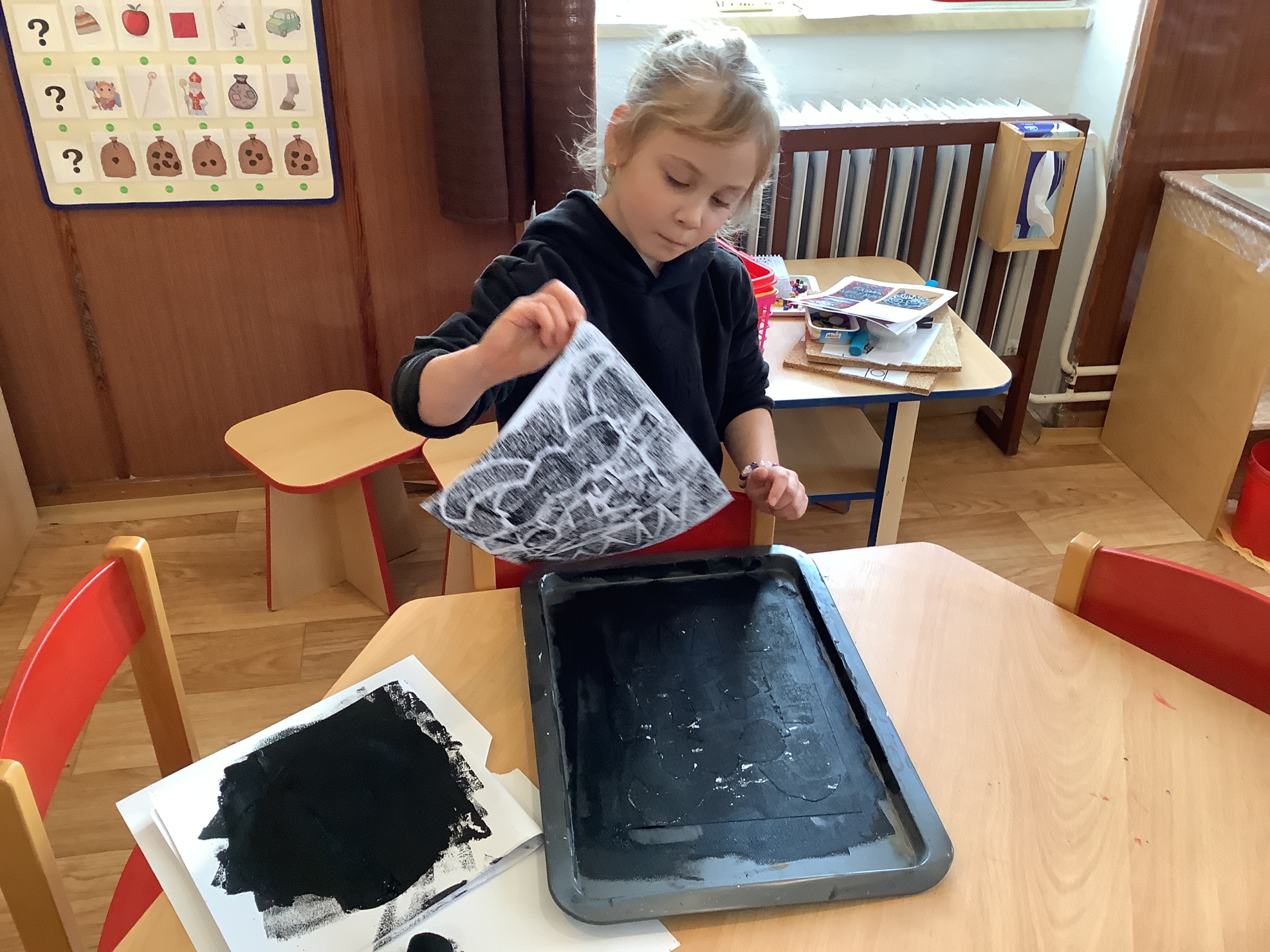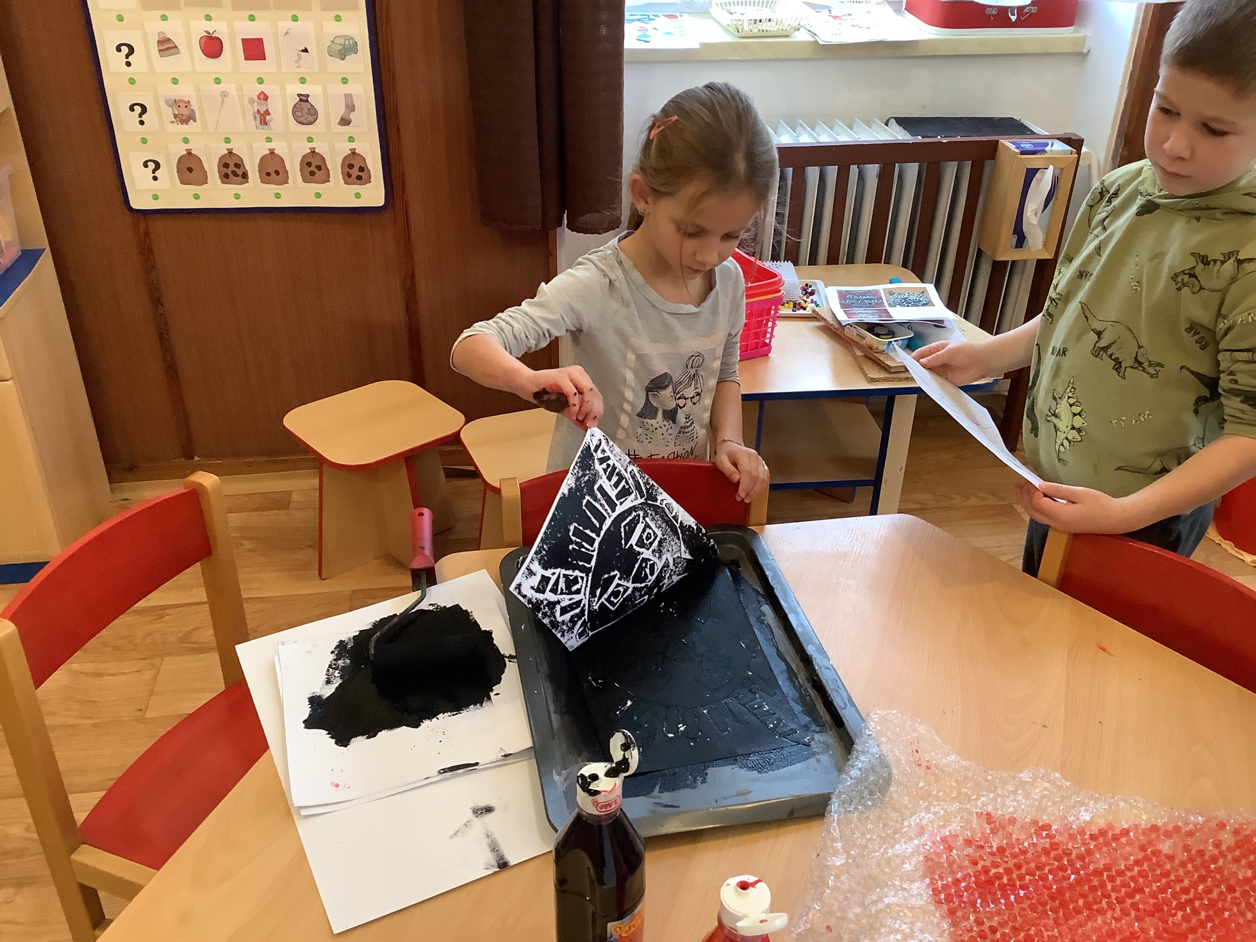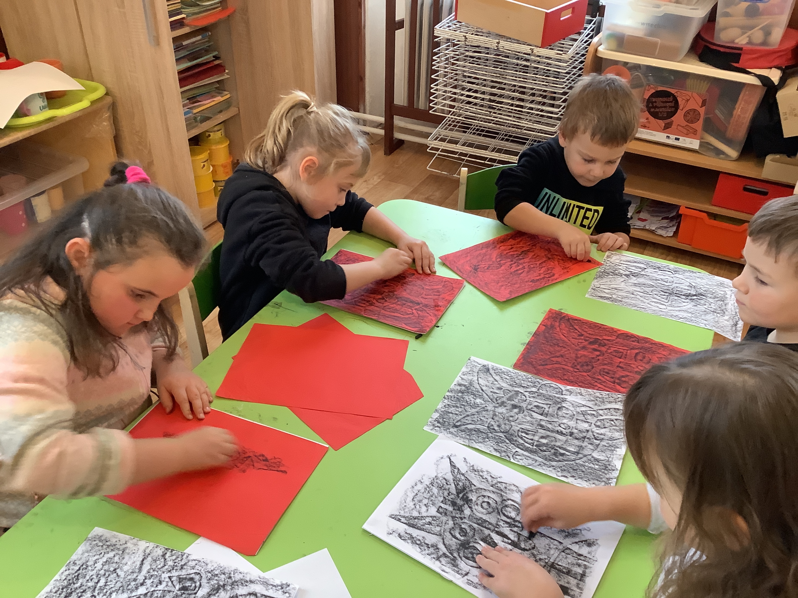 | Technika: Frotáž, papírový tisk. |