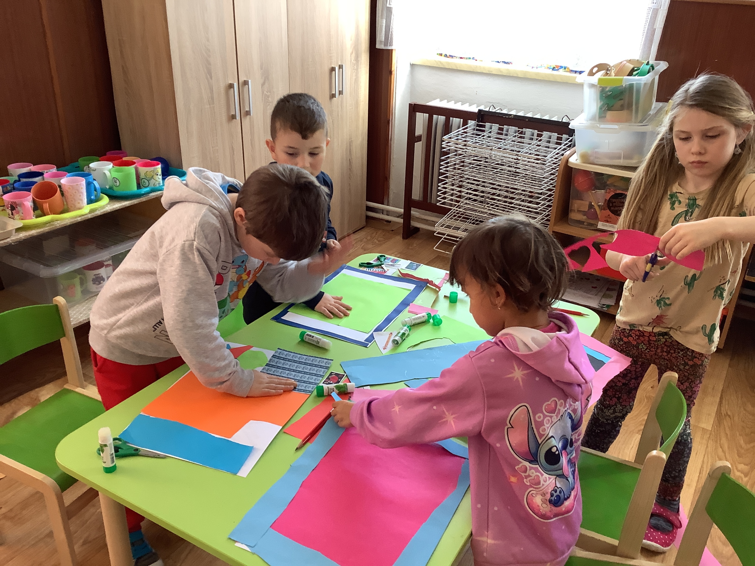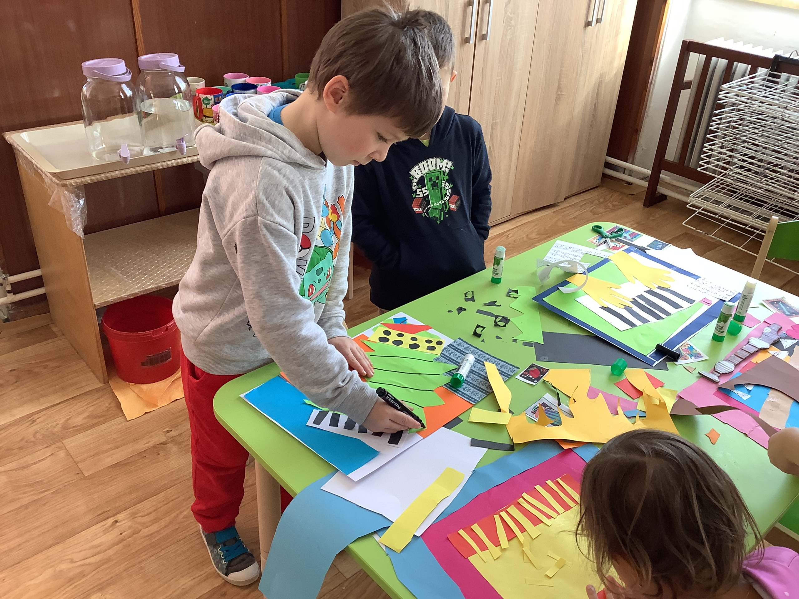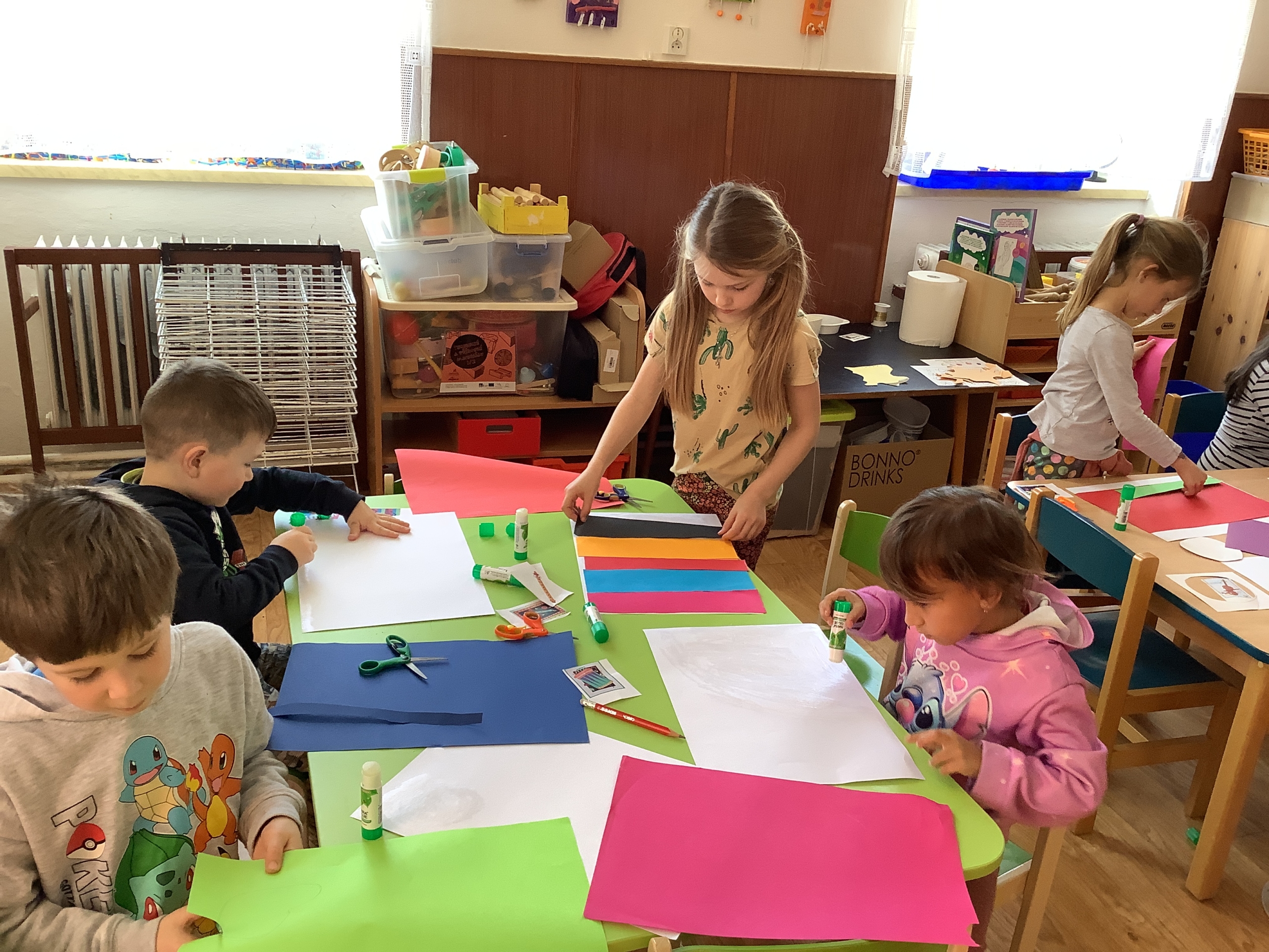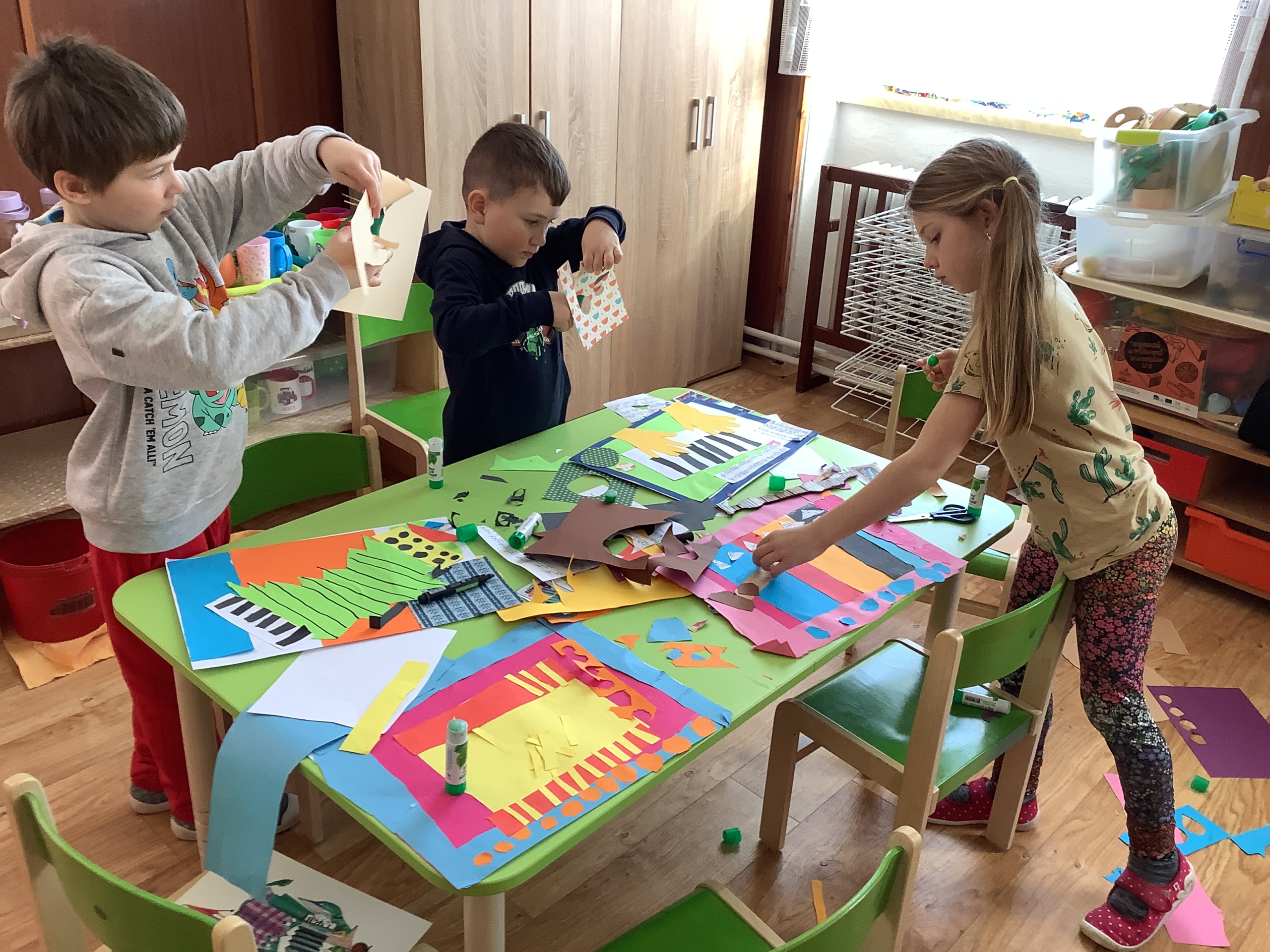 | Dílčí cíl: Vytvořit jednoduchou koláž skládáním a lepením papírových tvarů do podoby hudebního nástroje. Dokázat využít fantazii a stylizovat předmět netradičním způsobem podle vlastní představy. Pochopit, že obraz může být složený z tvarů a nemusí být realistický. |