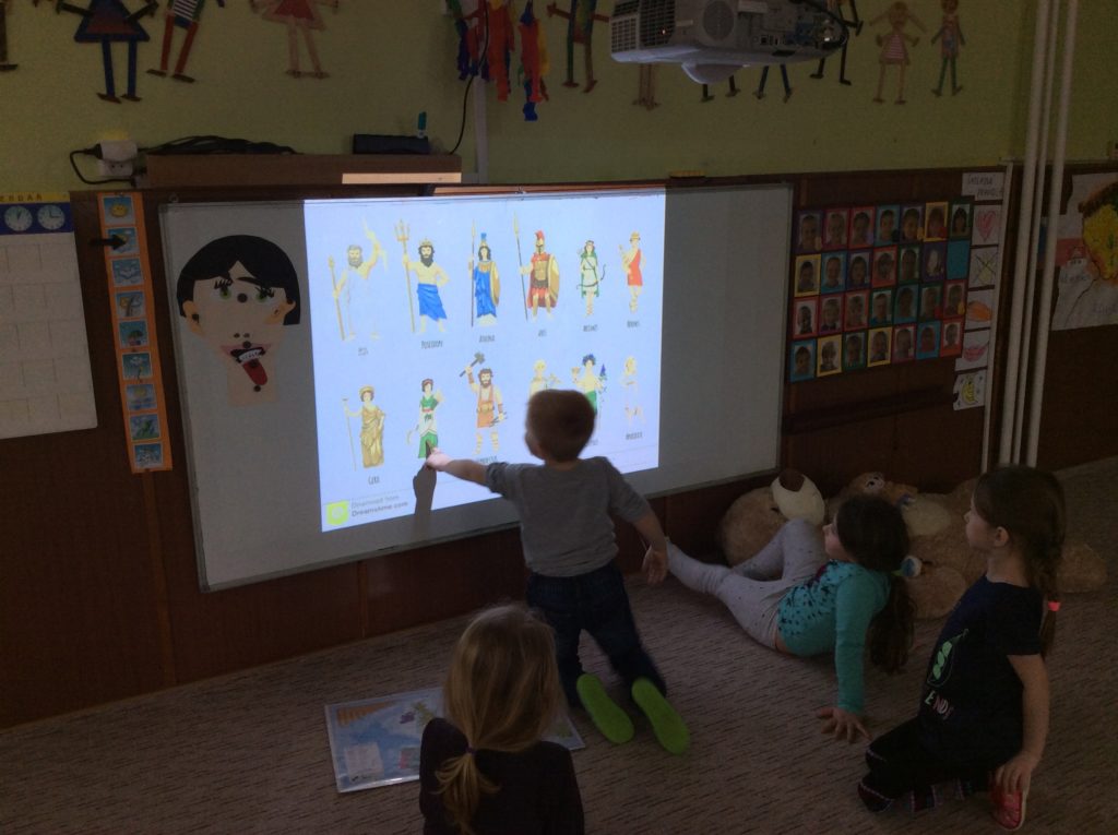 Prohlížení obrázků řeckých bohů. Děti hádají