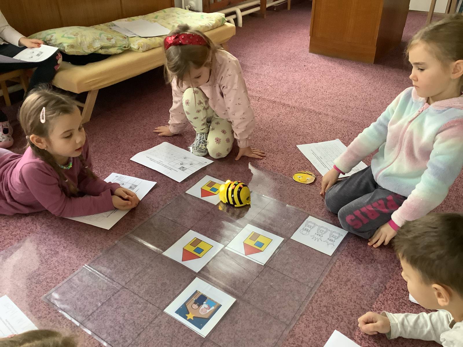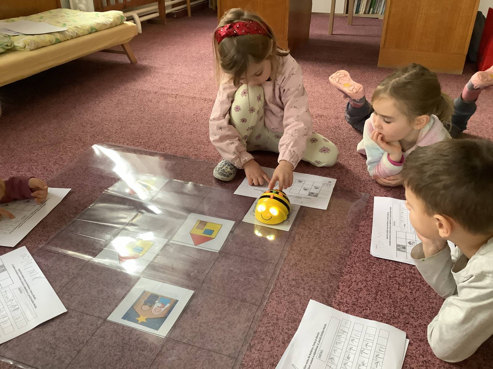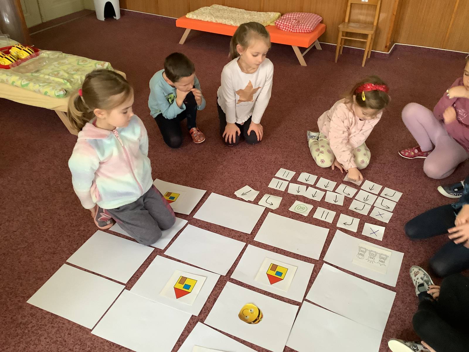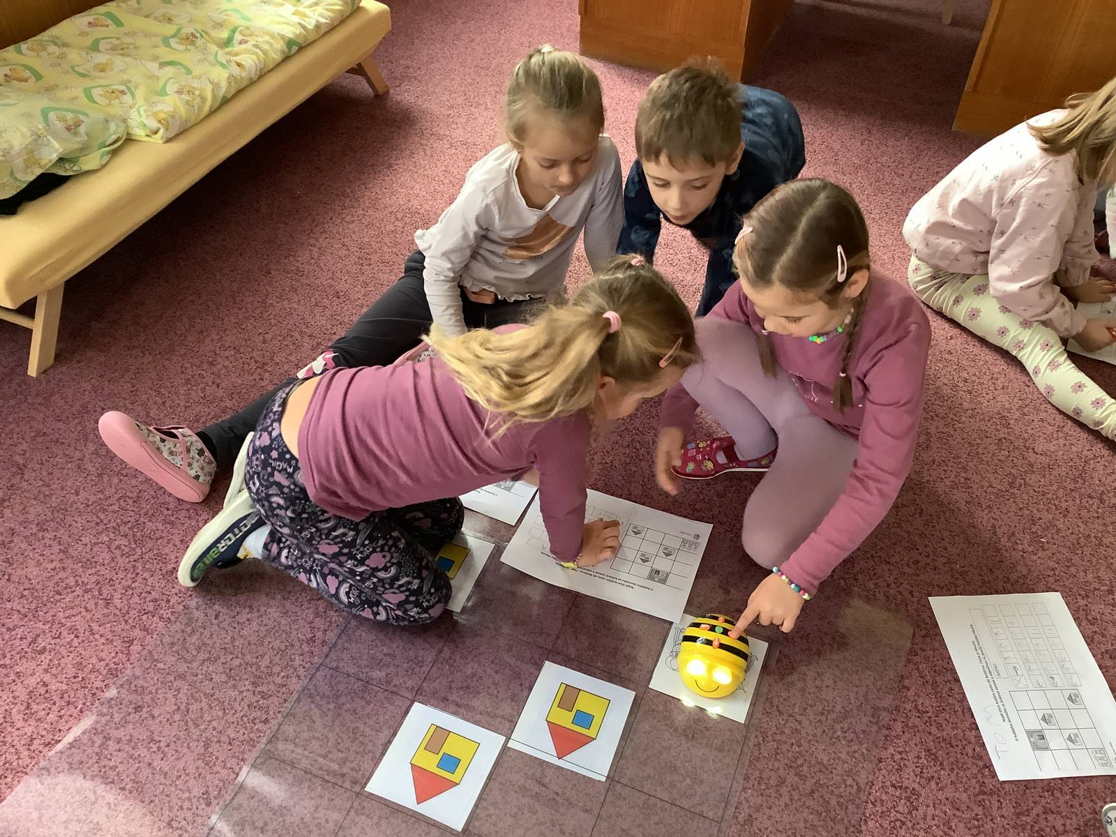 | Dílčí cíl: Procvičit si programování BeeBot, orientaci na ploše a tvorbu algoritmů. Samostatně naprogramovat BeeBot na pracovním listu. |