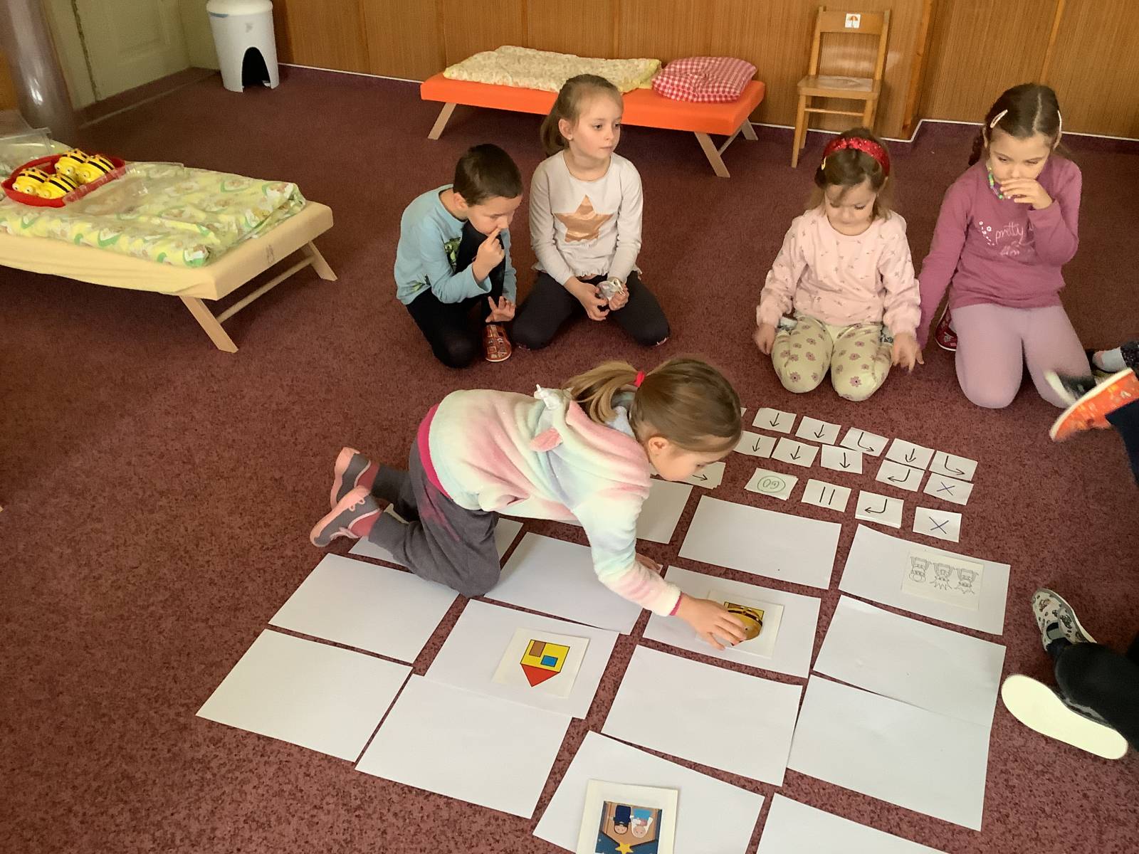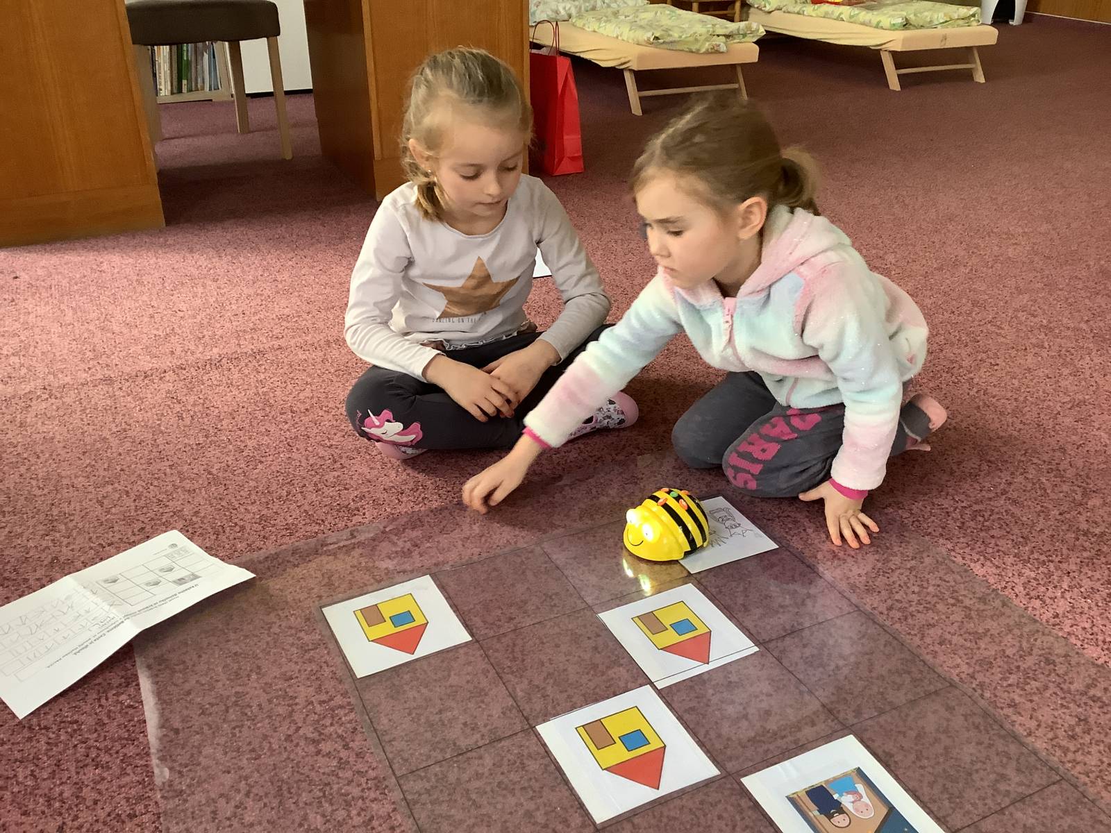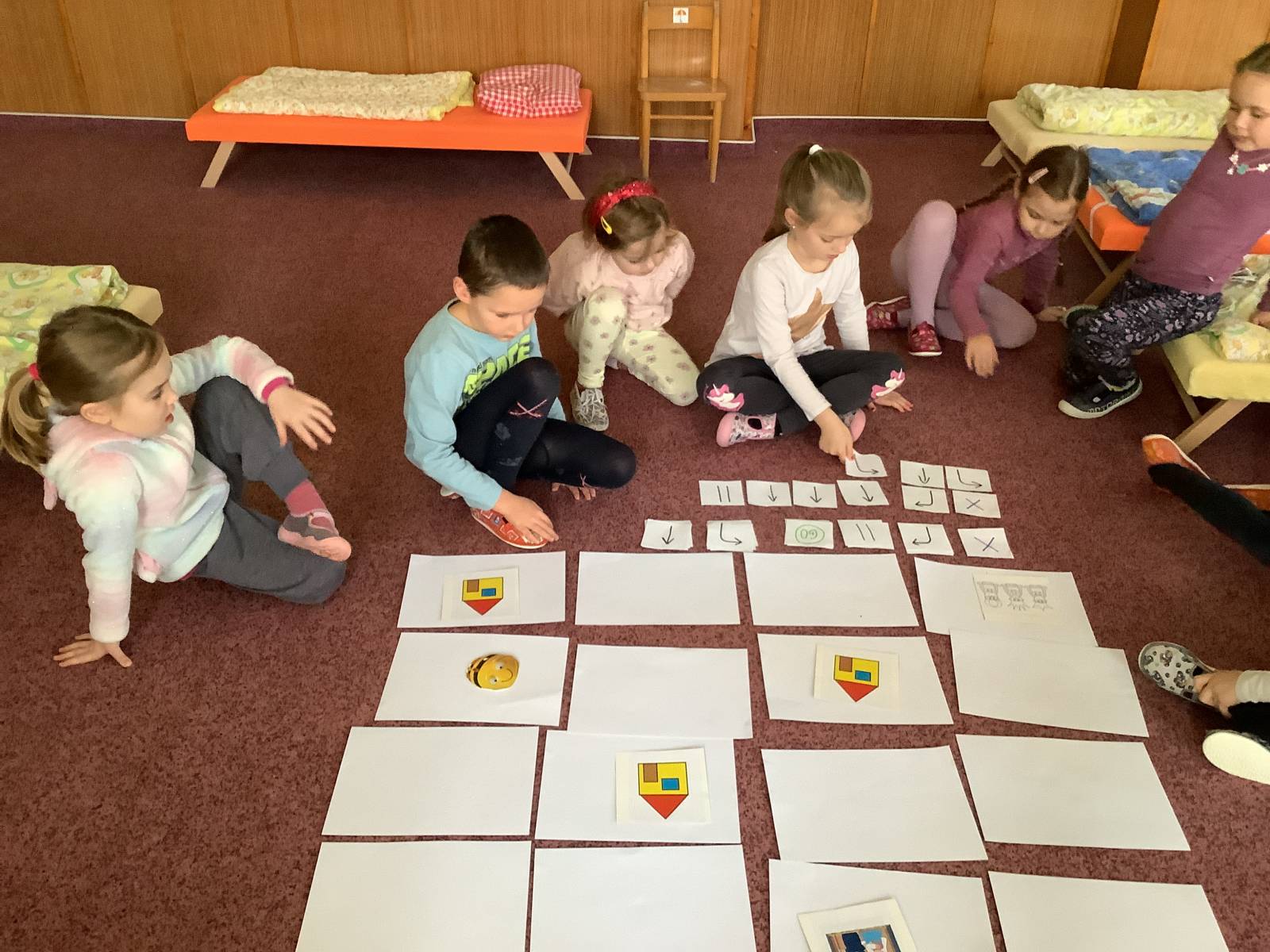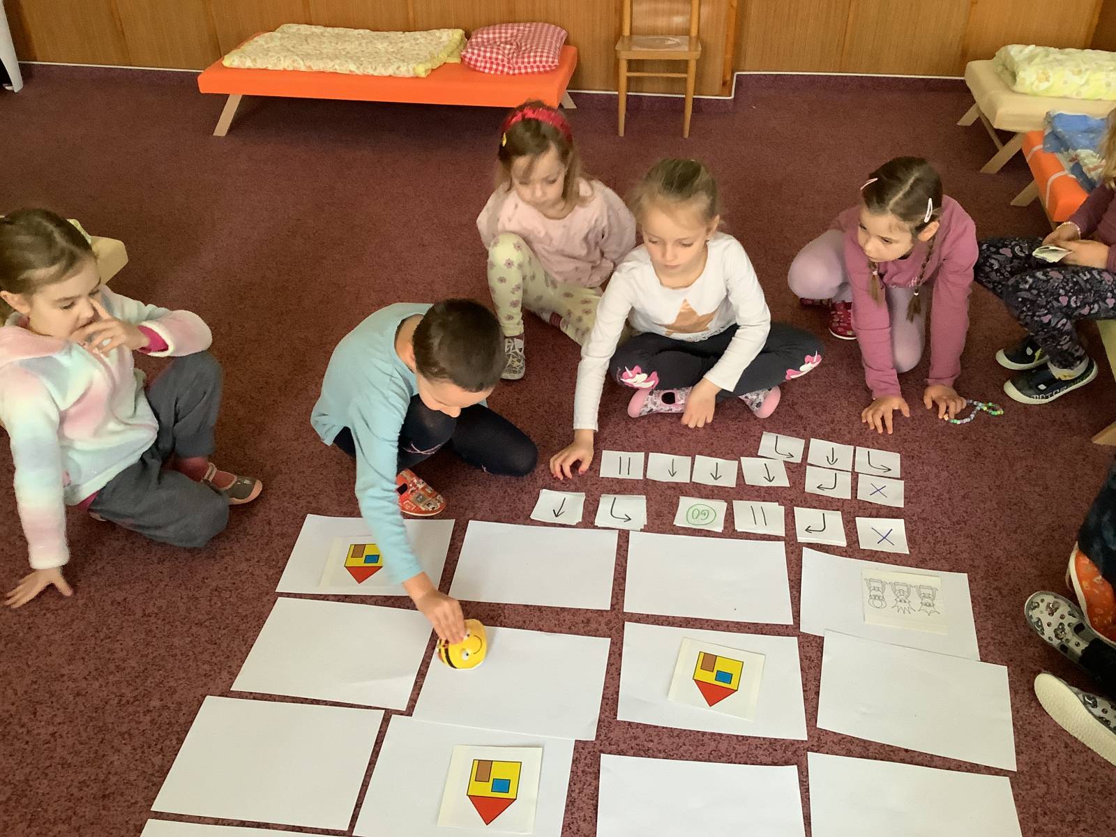 | Dílčí cíl: Procvičit si programování BeeBot, orientaci na ploše a tvorbu algoritmů. Samostatně naprogramovat BeeBot na pracovním listu. |